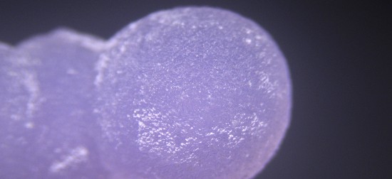 また、インドネシアのジャワ島からはブドウ状のカルセドニーが報告されました。こちらはアメシストと同じ色のメカニズムの紫色で、まさにグレープ・カルセドニーです。